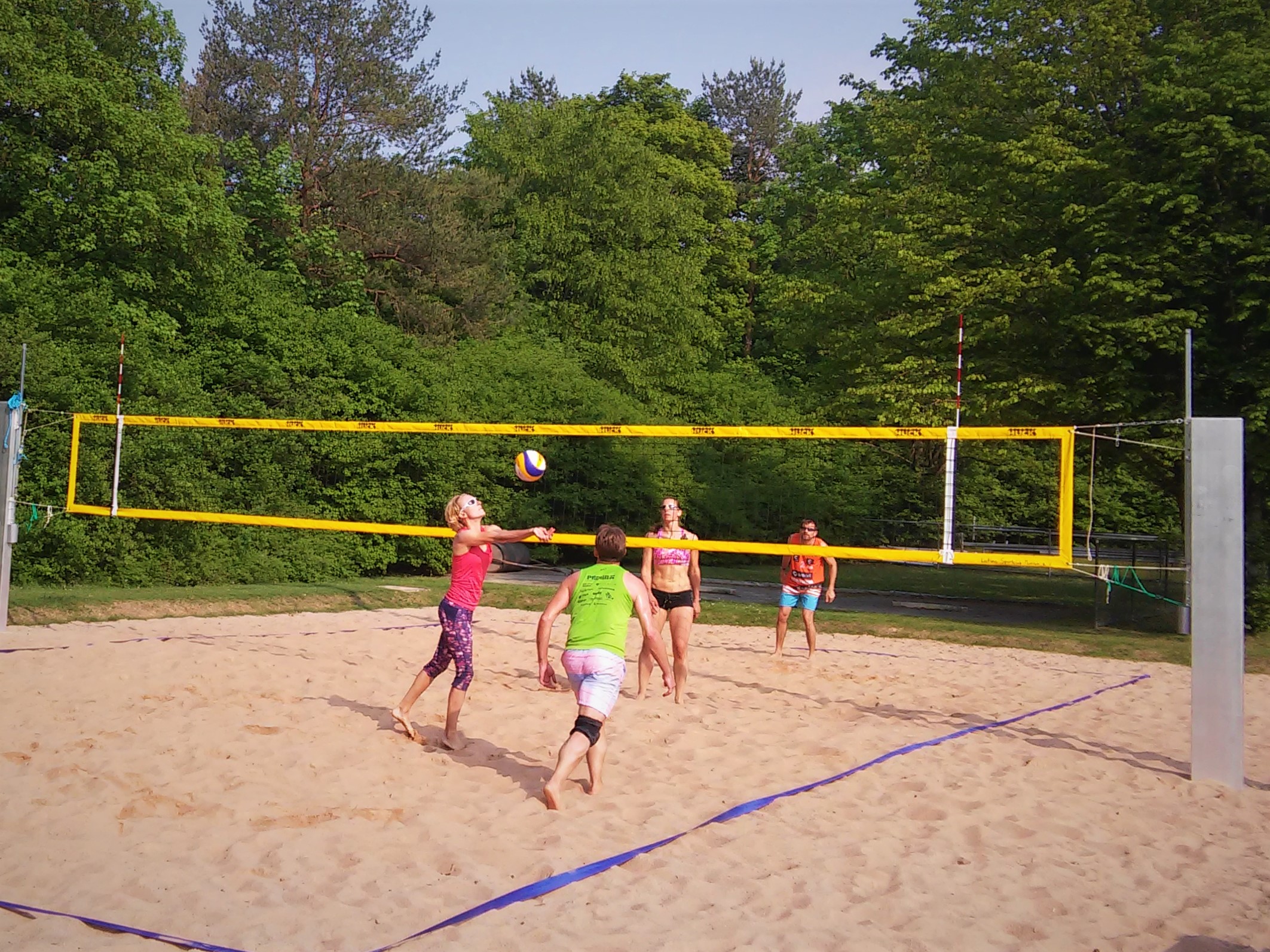Bestes Wetter + Freitagnachmittag + Vereins-Beachvolleyballplatz + neue Netzanlage = perfekte Einweihung!