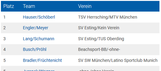 Im Volleyball darf man sich schon mit 35 „Senior“ nennen. Und solche Exemplare gibt es sogar im Latino SC. Das Team Max / Johannes (SV Schwarzweiß München / Latino SC Munich) räumte am 18.7. dann auch gleich mal Platz 5 bei der diesjährigen Bayerischen Meisterschaft im Beachvolleyball der Herren über 35 ab. Dabei arbeitete das Team sehr effizient: In der Vorrunde, in der es um nichts ging als die Bestimmung der Startposition für die K.O.-Runde lief es noch etwas holperig: Das erste Spiel gegen einen schlagbaren Gegner wurde knapp abgegeben, dabei entscheidend viele Unkonzentriertheiten. Auch das zweite Spiel gegen einen etwas stärkeren Gegner (Vorjahresvizemeister) wurde knapp abgegeben. Dabei wurde zwar besser gespielt, aber immer noch schlichen sich sehr viele Fehler ein, und die Fehlerquote bei den Angaben (sehr starkes Angabenspiel ist eigentlich ein Markenzeichen von Max und Johannes) war extrem schlecht. Aber: So langsam spielten sich Max und Johannes ein, lieferten gegen immer stärkere Gegner teilweise sehr kampfbetonte Spiele. Gerade die Verteidigung, ein weiterer Schwerpunkt von Max / Johannes ließ das ein und andere mal die Gegner schier verzweifeln. Auch wenn bei diesen Spielen immer wieder mal 2 Punkte zum Satzsieg fehlten, sammelten Max und Johannes genug Punkte, um trotz des schlechten Satzverhältnisses in einem nicht aussichtslosen Startplatz für die K.O.-Runde zu landen. Denn, wie am Anfang gesagt, die Vorrunde legte nur den Turnierbaum für die K.O.-Runde fest. In der Hauptrunde lief es plötzlich rund. Am Ende scheiterten Max und Johannes dann knapp im Viertelfinale mit 1:2 Sätzen an einem starken Gegner. Nachdem Satz 1 gewonnen war und in Satz 2 ein dominanter Start mit einigen Breaks für Max und Johannes das Halbfinale schon zum Greifen nah erscheinen ließ, versagte die Konzentration. Selbst Standards funktionierten nicht mehr und die Side-Out Quote sank massiv: auf diesem Niveau ein K.O.-Kriterium. Die zweite Hälfte von Satz 2 und Satz 3 wurden so sehr deutlich hergegeben. So schlimm ist das aber nicht, denn selbst bei einem Weiterkommen wäre das für Max und Johannes aller Voraussicht nach das Ende der Fahnenstange gewesen: Die anderen 3 Mannschaften der Top 4 waren Gegner, bei denen schon ein Satzsieg eine kleine Sensation gewesen wäre. Mit Platz 5 haben Max und Johannes deutlich besser abgeschnitten als im Vorfeld gedacht: Also aller Grund zum Feiern!